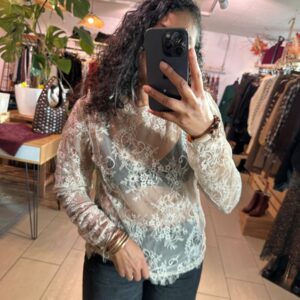 Toujours tendance, les pièces proposées par Kathy font toujours sensation ! J’ai craqué récemment pour un chemisier tout en dentelle.
