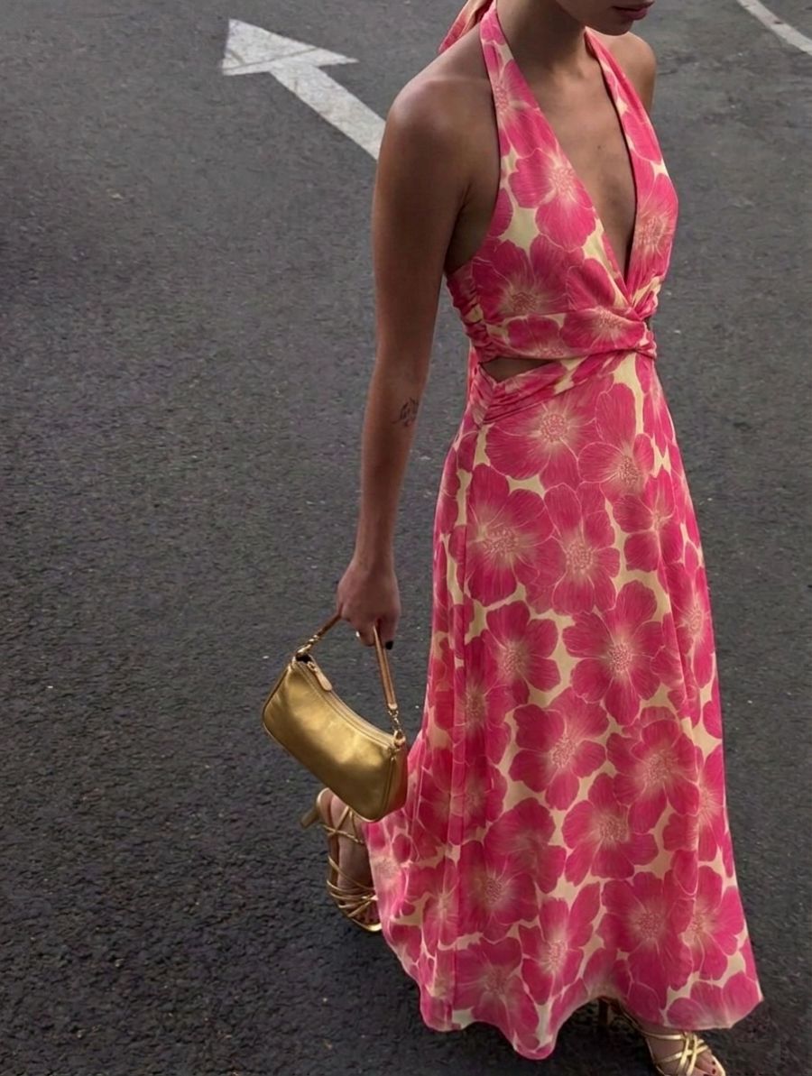 • Robe longue rose